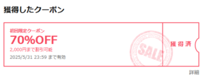 ▶ 初回ログイン限定クーポン(6回分最大3,000円OFF)