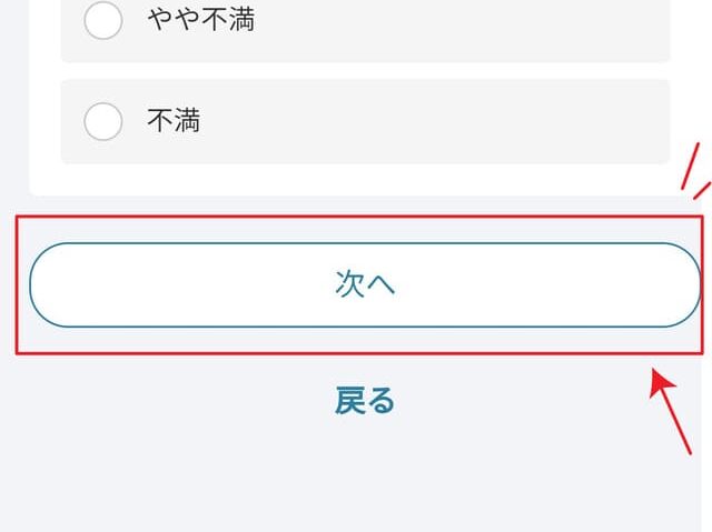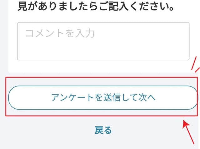 3ページのアンケートに答えて最後に「アンケートを送信して次へ」をタップをしてください。