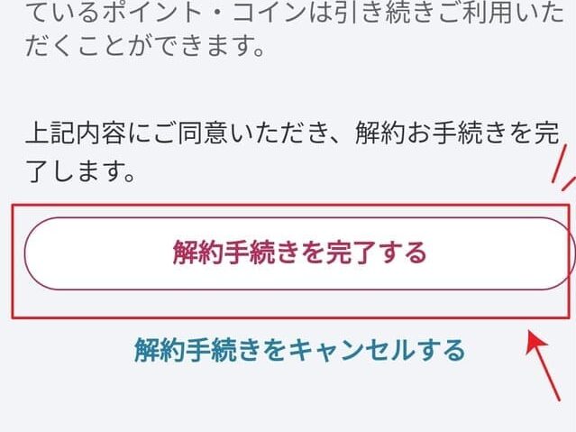 最後のページで「解約手続きを完了する」をタップして解約完了です。