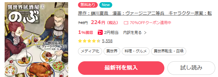 異世界居酒屋「のぶ」はロウや漫画メイトで読める?